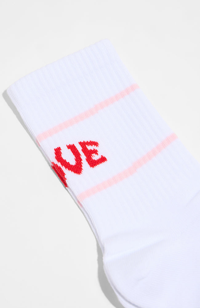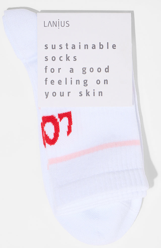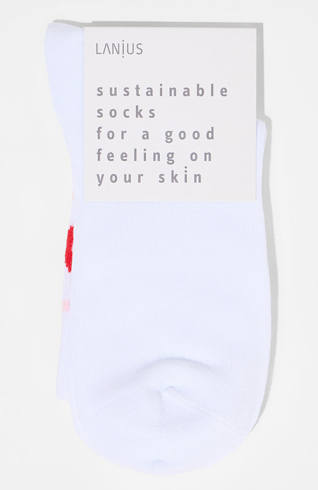 Grappige (sport)sokken van het Duitse merk Lanius gemaakt van GOTS biologisch katoen met een LOVE printje op de achterkant.