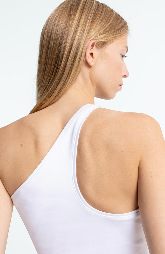 Cool white shirt from Dutch brand Kings of Indigo. This asymmetrical top has a slim fit, falls over the waist, and is made from 100% GOTS-certified organic cotton. The model is 1.77 m tall and wears size S.