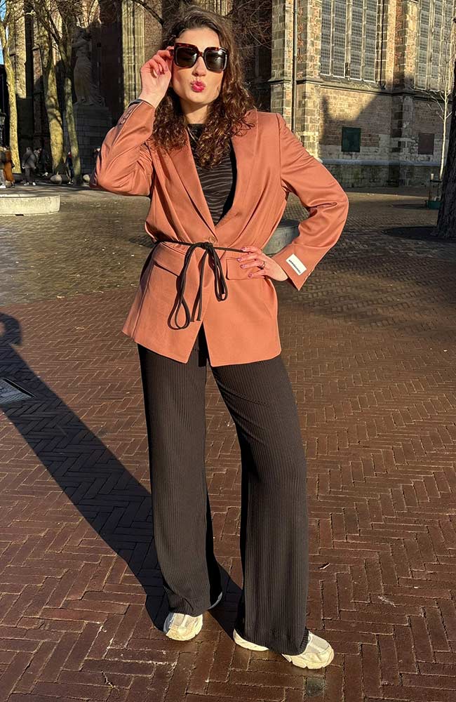 Beautiful blazer from ARMEDANGELS in the soft pink color 'light berry'. This jacket is made of the eco-friendly and more durable material Lyocell (TENCEL™) (96%) and a little bit of elastane. She has an ARMEDANGELS logo on the sleeve (which you can easily remove e.v.t.), a slightly oversized model and comes down to the hips. A timeless classic that you can wear and combine endlessly. For example with the matching pants and the nice turtleneck as shown in the picture!