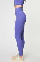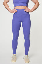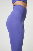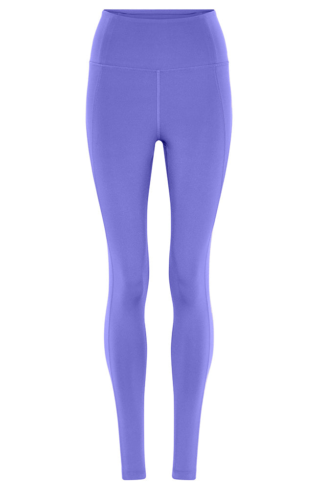 Great yoga leggings by the brand Girlfriend Collective in the color 'wild iris' (purple). Once you've tried these leggings, you won't want anything else. The leggings are 100% non-translucent, stretchable in 4 directions, have a small key pocket in the inside of the waistband and fit perfectly and drape nicely due to the 'compression'. Made from 25 recycled plastic bottles, feels soft but sturdy. Made for high impact workouts and 'squad proof'.