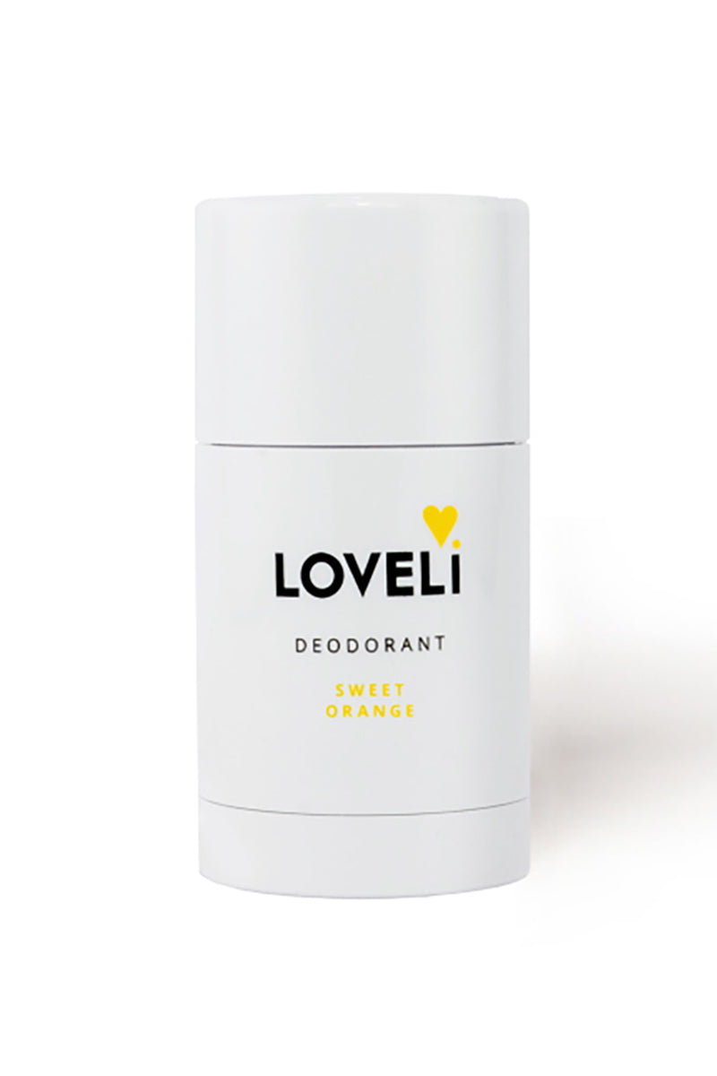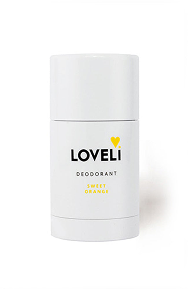 This purely natural Loveli deodorant stick (30ml) without aluminium really works! This deo stick is 100% natural and based on coconut oil and baking soda (neutralises odours). All ingredients are good for your skin and protect you from sweat smell. Sweet orange is a summery fragrance of orange and mandarin.
