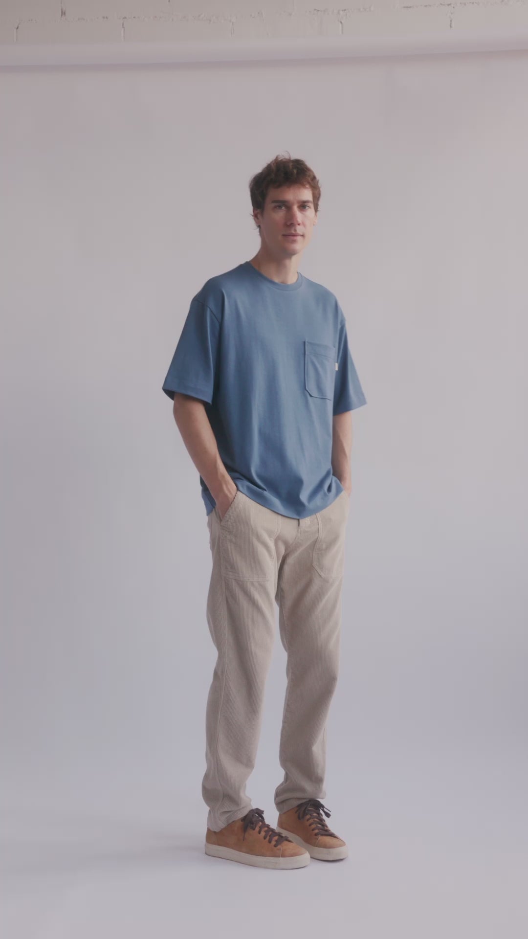 Hip, blue t-shirt from Spanish brand TWOTHIRDS. The shirt is made of slightly heavier/thicker organic cotton, has drooping shoulders and falls oversized.