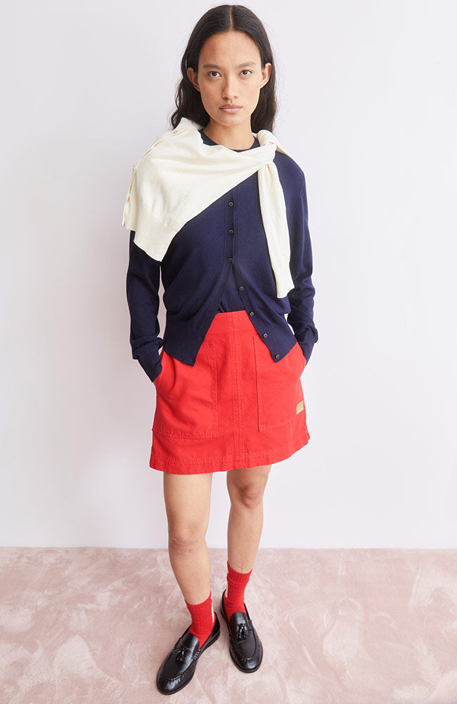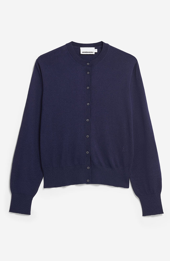 This cute dark blue cardigan from ARMEDANGELS can be mixed and matched endlessly and is a real must-have in your wardrobe. The finely knitted cardigan is made from a blend of cotton and lyocell TENCEL.