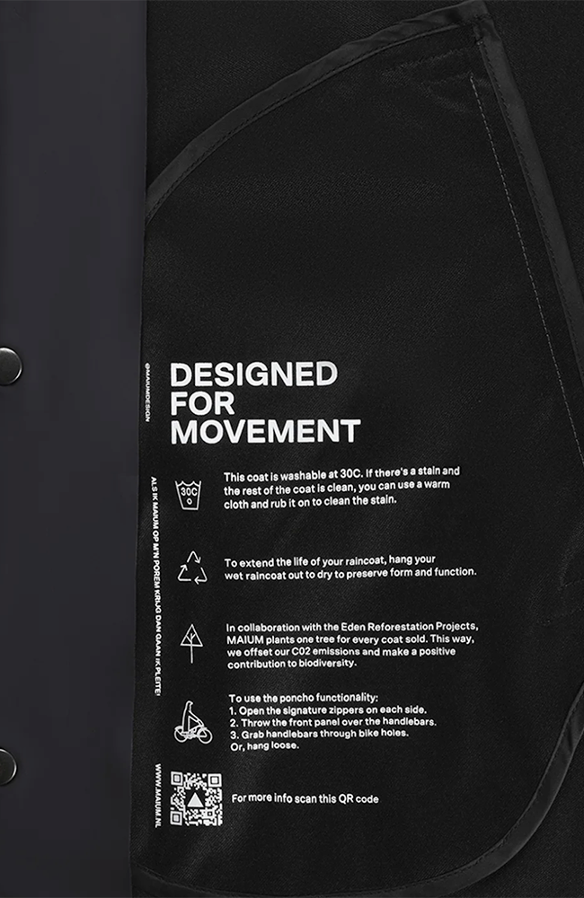 Have you heard of the fully waterproof raincoats from Dutch brand MAIUM? You can instantly recognize these coats by the zippers on the side that give them their unique poncho function, which is super handy for cycling or riding an (e-)scooter. Underneath the zipper is an opening where you can put your hand through so you can put the entire poncho over your handlebars. This way, you'll stay dry from head to toe!