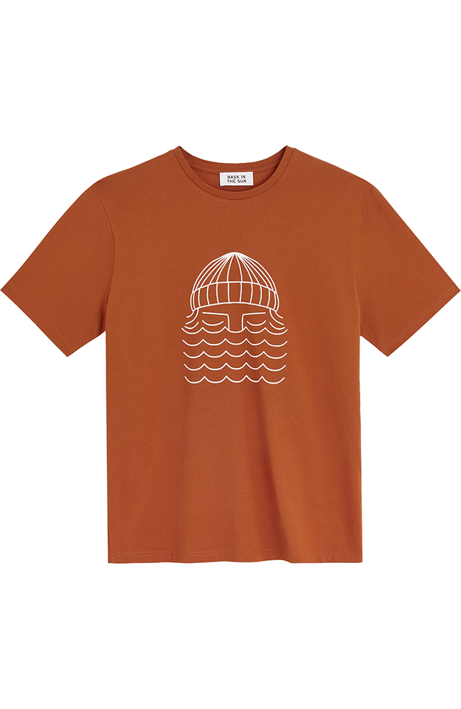 Nice t-shirt From Bask in the Sun in orange (canyon) with a sailor print on the front. The shirt is made from organic cotton and is wonderfully light and airy to wear.
