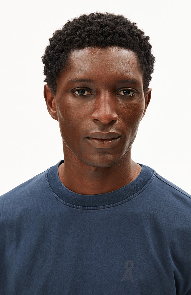 This Maarkos Iconic Å This ARMEDANGELS T-shirt is a must-have basic in a subtle dark blue (night sky washed) shade. The shirt has a regular fit with a crew neck and is made from a heavier-weight organic cotton. Thanks to its minimalist design and neutral color, this shirt is easy to pair with other items. Our model Aziz is 185 cm tall and is wearing a size M