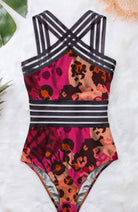 This beautiful Alanis swimsuit by AAVA with pink, brown, white abstract animal print. It has two crossed sheer/black straps in the front that run straight down the back. A similar band accentuates the waist. The swimsuit is designed so that the elastic band and crossed shoulder straps i.c.w. the firm material give enough support to the bust (there are no cups in this swimsuit), even for large breasts up to cup G. The swimsuit is made of durable ECONYL. It breathes, is comfortable and is super soft and stretchy. The color is best seen in the 2nd photo.